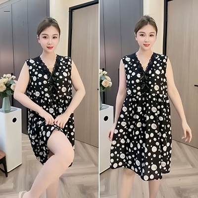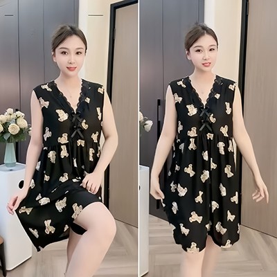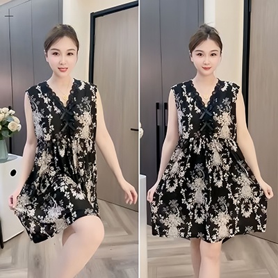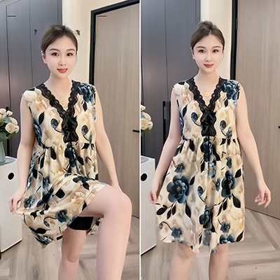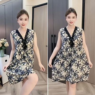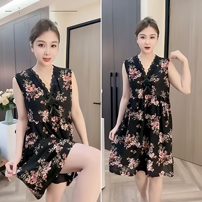 碎花V領冰絲睡裙,寬鬆休閒,冰涼透氣,遮肉顯瘦,親膚舒適面料,可居家可外穿